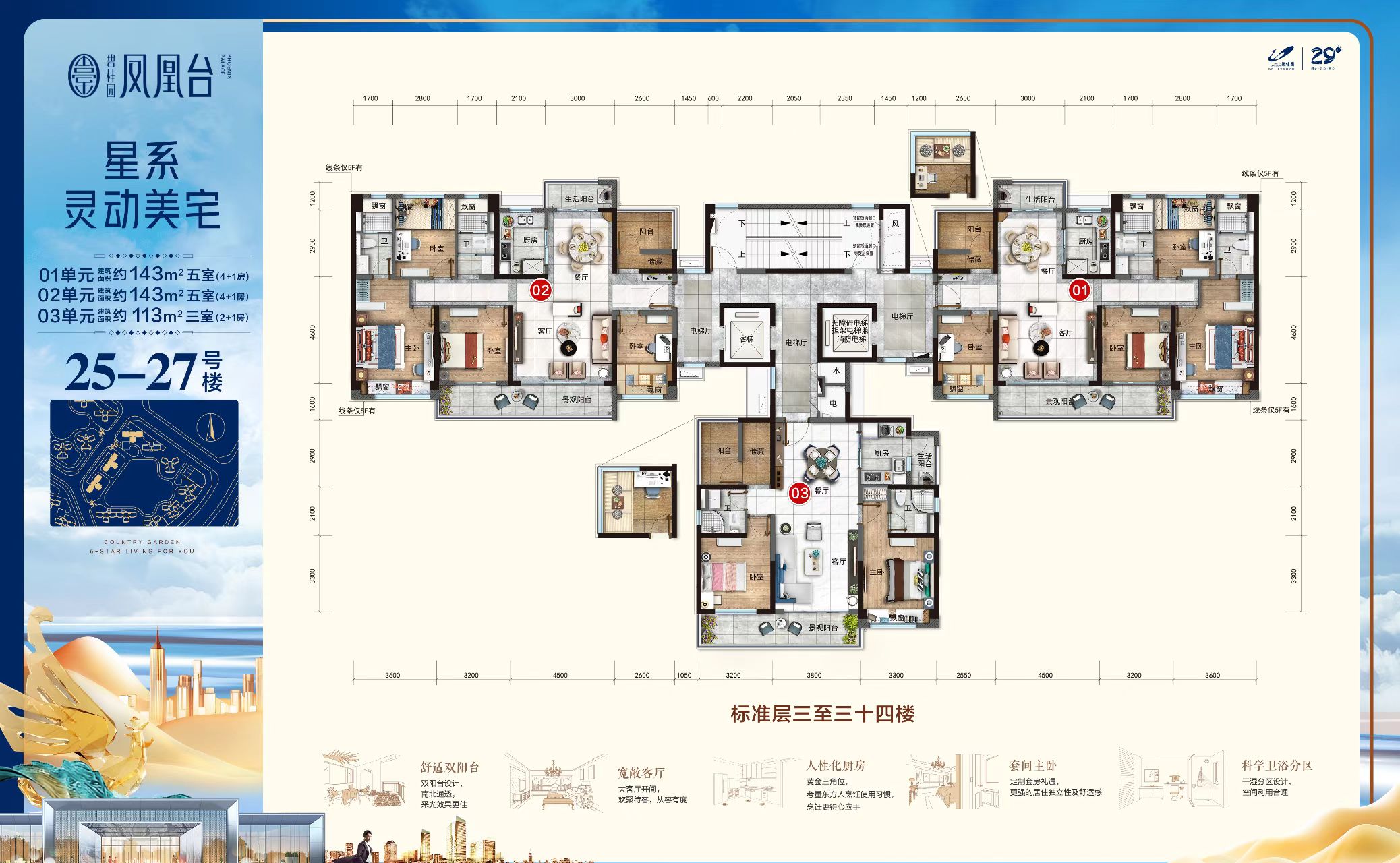 项目住宅地块总共分ABC三期开发,总规划布局采用围合式大中空花园设计,建筑大部分采用点式独栋建筑设计,较大化保证现代人的居住品质。