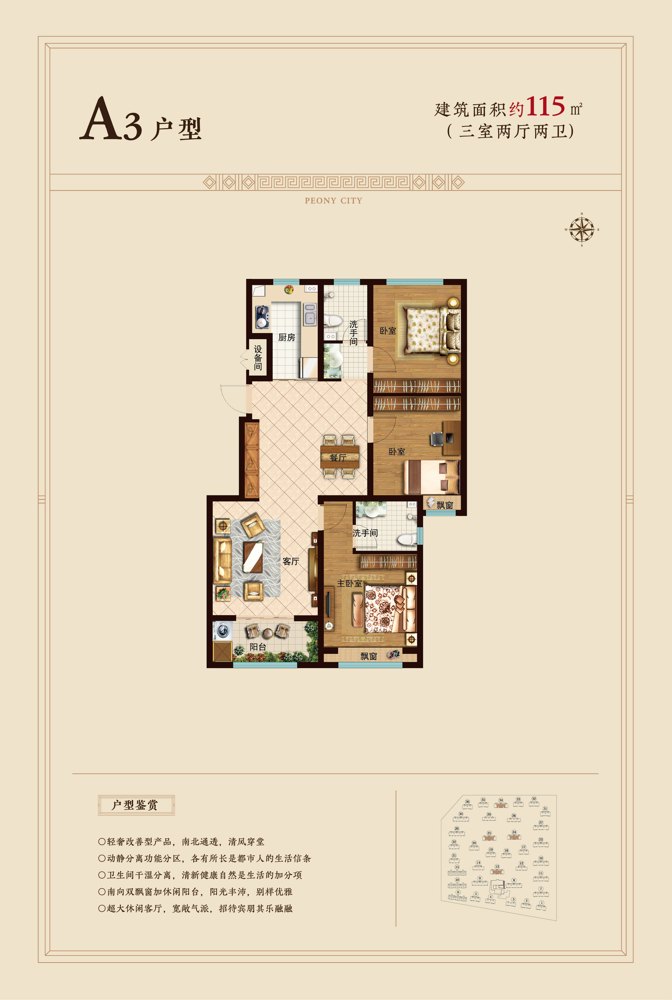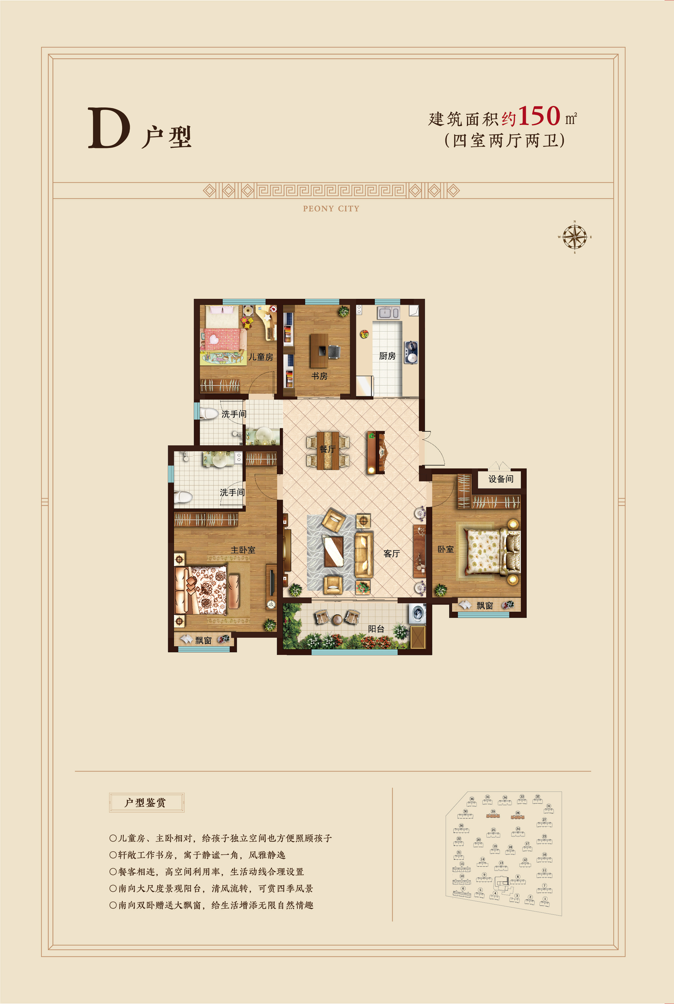 在售 南北通透 户型方正 全明格局 客厅朝南 主卧朝南 主卧带卫 干湿分离 飘窗 观景飘窗