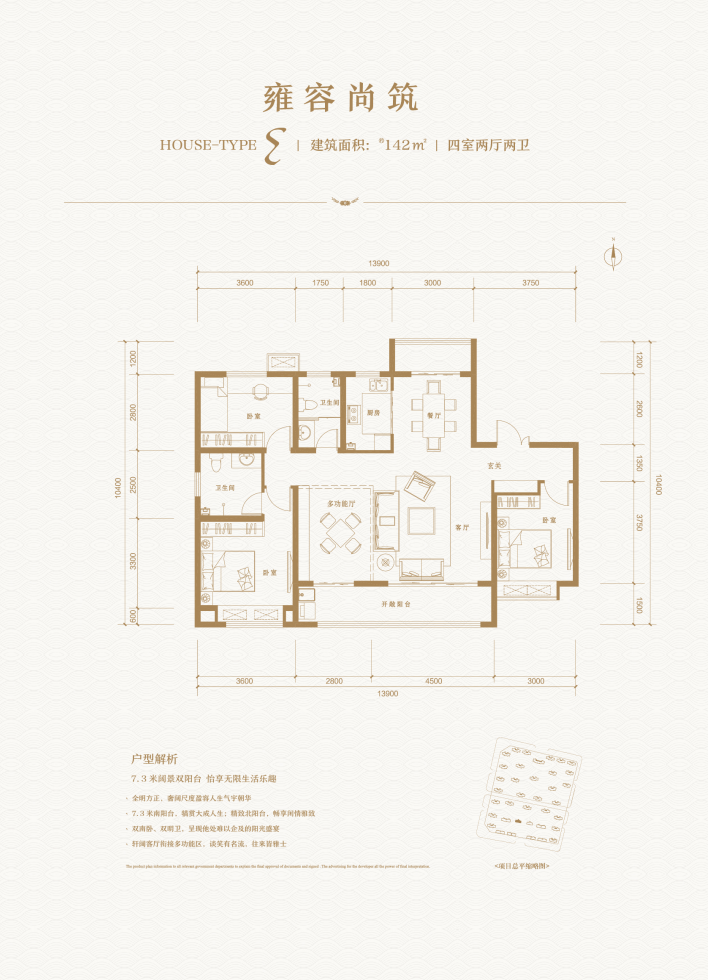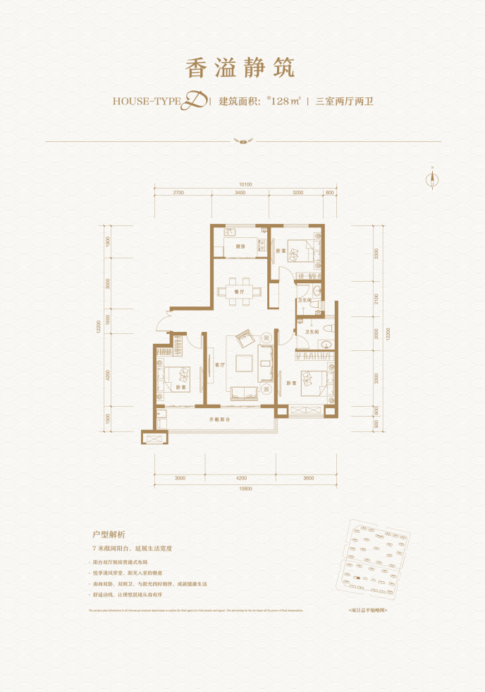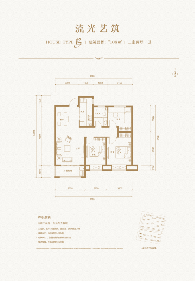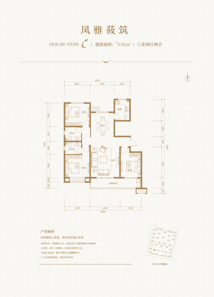 待售 南北通透 户型方正 全明格局 客厅朝南 主卧朝南 餐客分离 开放厨房 干湿分离 卧室带阳台 观景落地窗