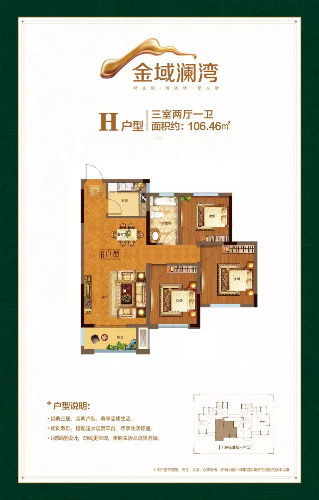 3室2厅1卫-金域澜湾H户型