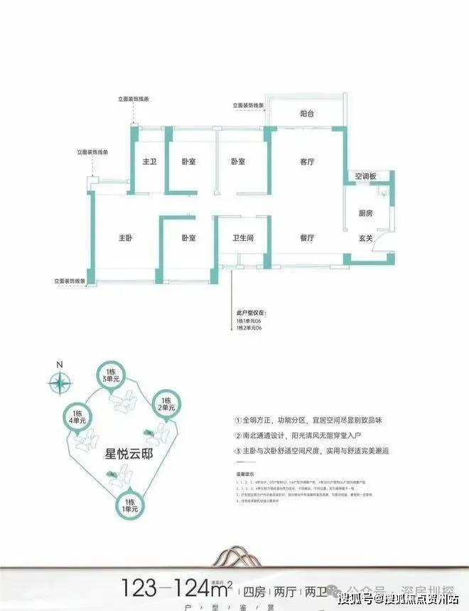建面约124m²四房两厅两卫: