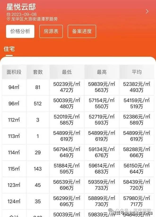 龙华大浪,星河星悦云邸于2023年9月9日取证入市,本次推出849套房源,面积94㎡的3房2卫,112-124㎡的4房2卫户型,备案均价5.48万/㎡,备案单价5万-5.98万/套,总价472-733万/套,预计2025年年底送简装交房!