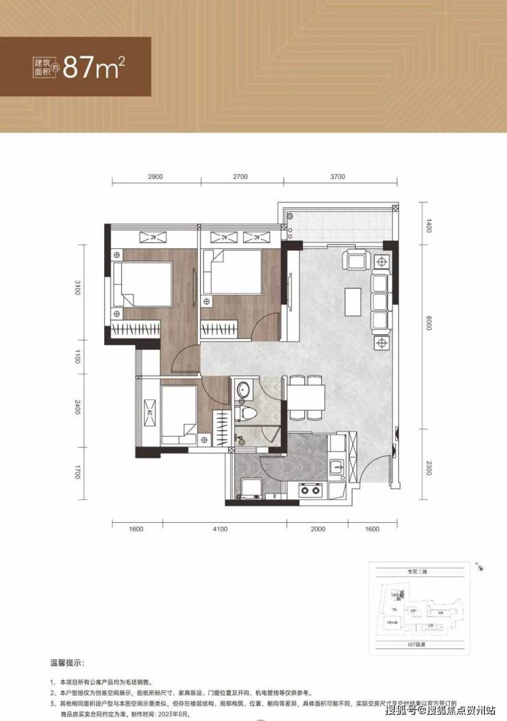 (2)住宅:44-63-87㎡,户型方正、带阳台、通燃气,适合刚需购房者。