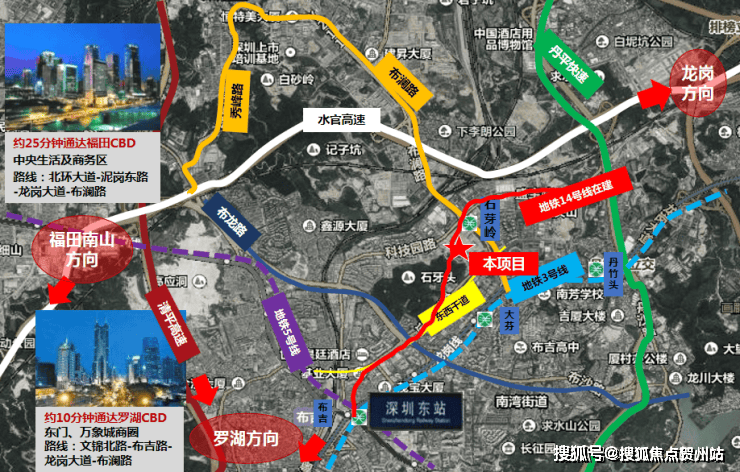 项目距14号线(已通车)石芽岭站直线距离约600米,1站达深圳东站/2站达罗湖/3站达福田,通达时代湾区