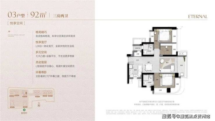 超高使用率(90%+):通过“弹性方厅”(可变空间)、设备平台外拓、多飘窗实现。