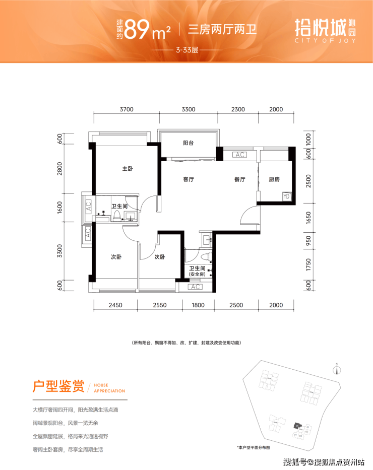 🏠产品:85-89㎡三房,共 155 套