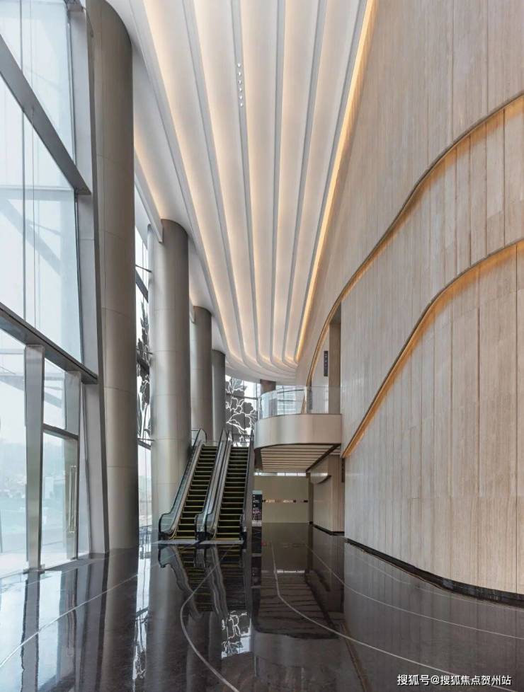 约18m挑高大堂,撷取东方元素为设计灵感,营造恢弘而高雅的商务空间,打造企业门面担当,彰显非凡品位。同时,采用地下地上双层大堂分流设计,可在通勤高峰期实现人员快速分流,以人性化考量,营造秩序井然的尊崇界面。