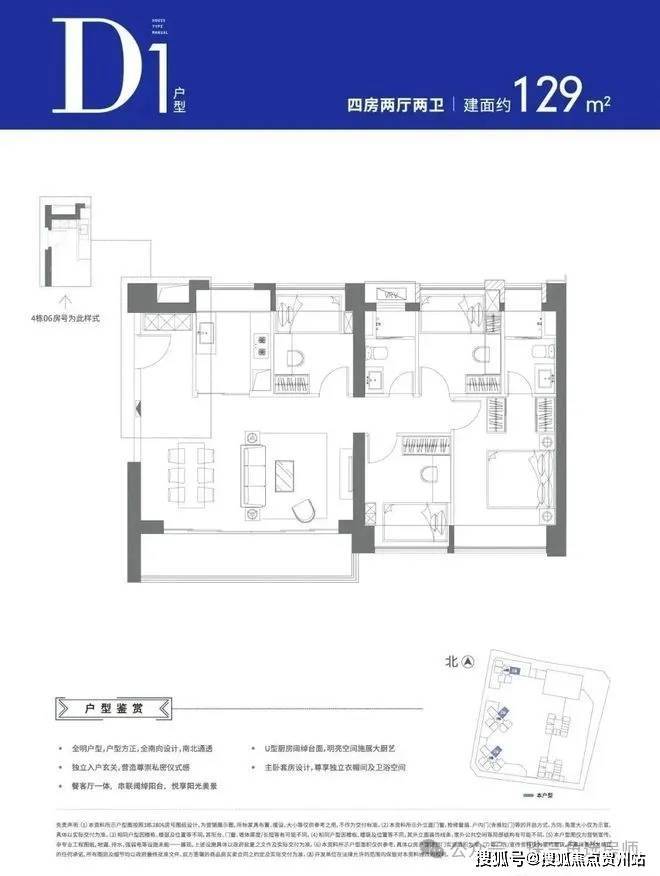 建面约129㎡ 四房两厅两卫 D1、D2户型