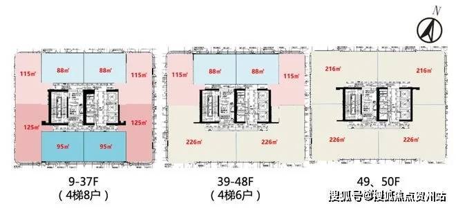 •建筑形态:194米超高层塔楼,共50层,分为低区(9-38层)、高区(39-48层)及顶层(49-50层),梯户比从低区4梯8户到顶层4梯4户逐级优化。