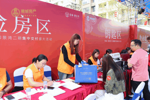 现场划分了验房区、钥匙区等功能区域,工作人员全程陪同办理手续,流程清晰高效。