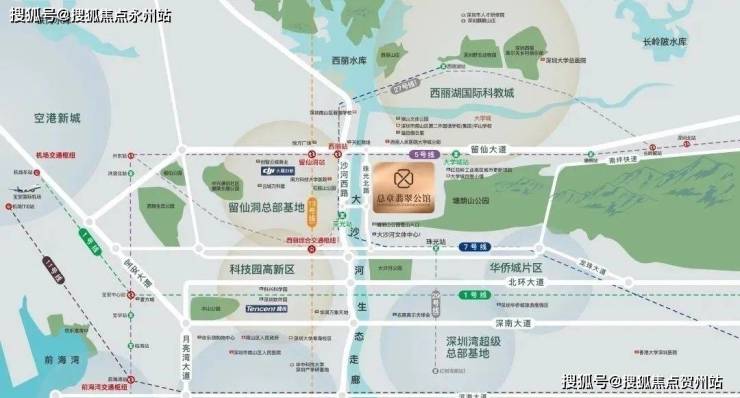 西丽湖国际科教城——创新驱动,构建“一心、两轴、三区、六大创新组团”的功能布局结构。汇聚深圳大学、南方科技大学、清华大学深圳研究生院、北京大学深圳研究生院、哈工大深圳研究生院等7所高校,超1100家的国家高新技术企业。