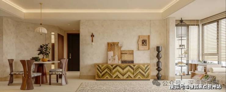 最难得的是南北对流——风从阳台穿堂而过,阳光是家庭最好的光影师,小面积也养出“大宅感”。