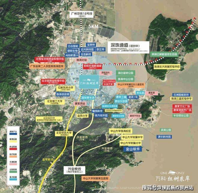 万科红树东岸位于珠海高新区金星路228号,距深珠通道规划落脚点约2km,距兴业快线(预计年底通车)约3km。