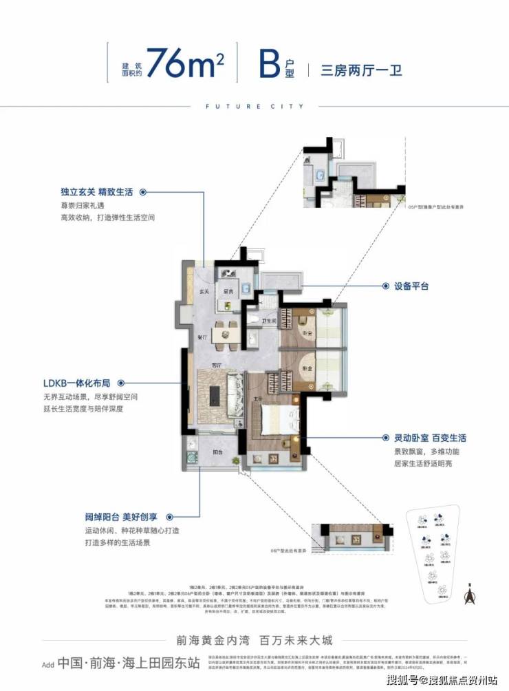 (2)76㎡三房一卫:折后总价 282-314万,单价3.71-4.49万/㎡ ;