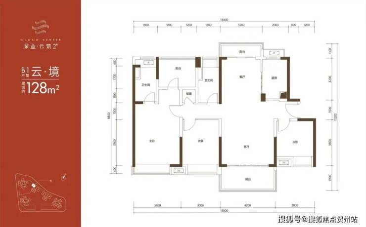 128㎡的4房2厅2卫,B1户型,仅5栋B单元的03号房才有,设计的是竖厅格局,南北通透双阳台,客厅4.2米开间,餐客厅一体化设计,4个卧室分别做到了3.6米/3米/3米/3米的宽度,U型厨房,卫生间干湿分离,得房率:79.71%(不含赠送),大阳台主朝正南向。