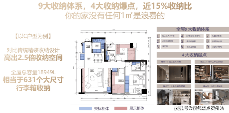 享受最新阳台飘窗政策,约95%的户型高使用率,包含9大收纳体系,4大收纳爆点,近15%收纳比,你的家比别人多出30%的使用空间。
