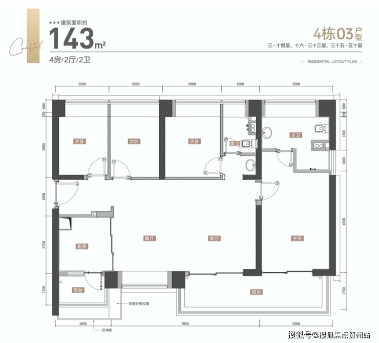 【产品面积段】100-120-143-188㎡3-4房