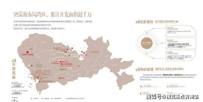鸿荣源,城市地标缔造者,与城市共荣,汇集鸿荣源32年匠心精铸,传承“誉”系精工品质,携超能标杆钜作,献礼湾区,鸿荣源32年稳健发展、布局大湾区,累计综合开发建筑面积超过1000万㎡。
