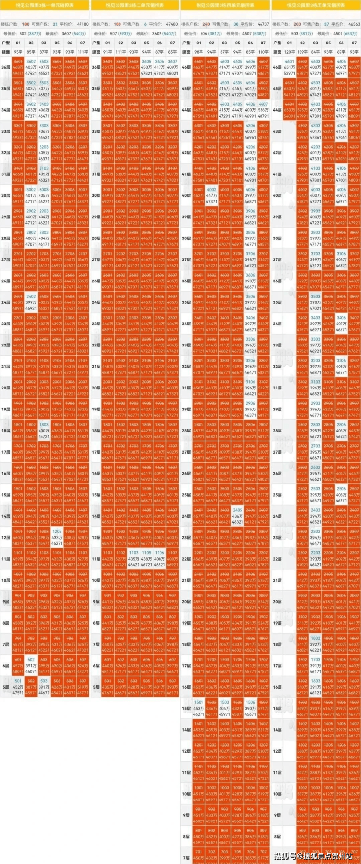 下面是宏发悦见公园里全套的备案价格+销控表,供大家参考。