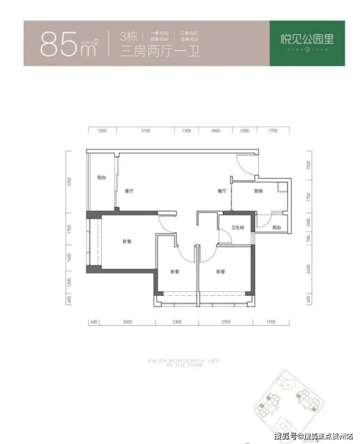 85㎡的3房2厅1卫,折后总价297-319万/套,单价3.49-3.75万/㎡。