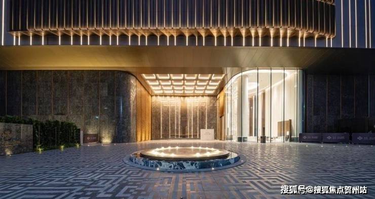 双层环岛圆型水景,搭配宝格丽黑奢石,由上百块巴西铂金钻拼接成宏大的奢石矩阵,与水波纹纯铜锻雕碰撞,拼出寓意“九五之尊”的奢石景墙。