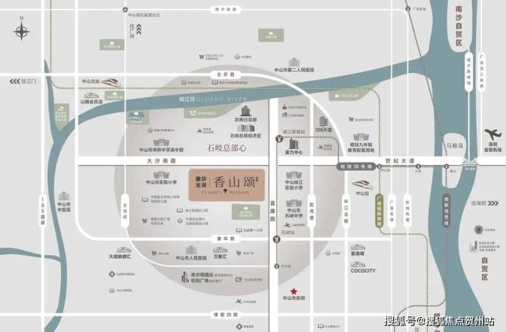 •交通枢纽| 3纵2横1地铁、双城轨外联内通,直达广州,约400m(直线距离)即达岐江城地铁站 (在建中),近距中山站、中山北站两大站点