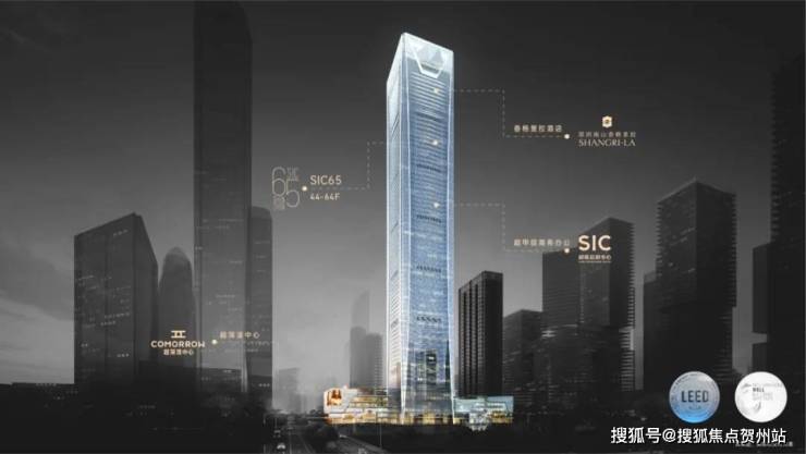 项目位于位于南山区,高达358米,共80层,分别布局高端商业Mall超深活中心、超甲级写字楼、SIC65办公商务会馆、香格里拉酒店四大场域,是深超总首个350m+超高层综合体。