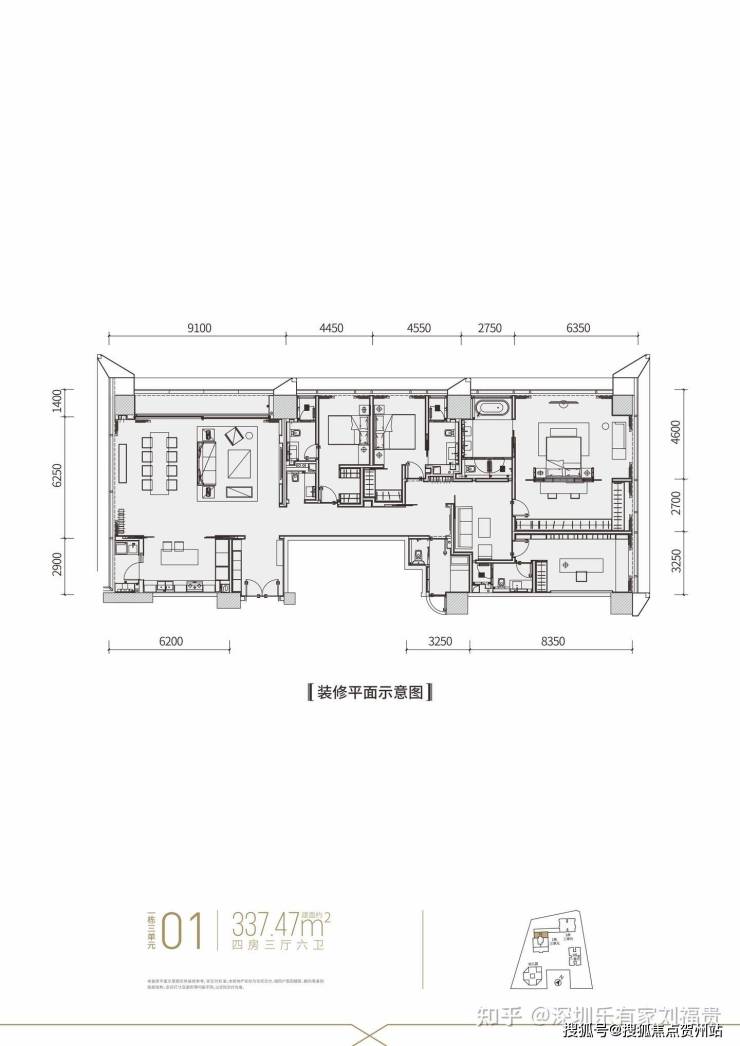 公寓户型鉴赏【建面约337平4房全套房+1工人房3厅6卫】