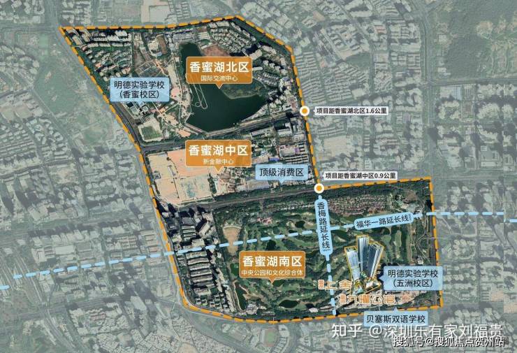 【福田CBDx香蜜湖双中心价值高地】 项目占位深圳最高水平金融总部聚集区、国家级南方金融中心的香蜜湖金融中心南区。 规划香梅路延长线/福华一路延长线穿过深圳高尔夫公园,将形成香蜜湖北、中、南区高效内循环,未来项目约一公里直达香蜜湖金融中心中区,与国际交流中心、深圳改革开放展览馆、国际演艺中心、深圳金融文化中心四大地标配套为邻。