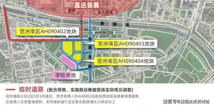 一是临时道路,会搭设黄埔涌便桥,连接琶洲中区,计划2025年约一季度建成;