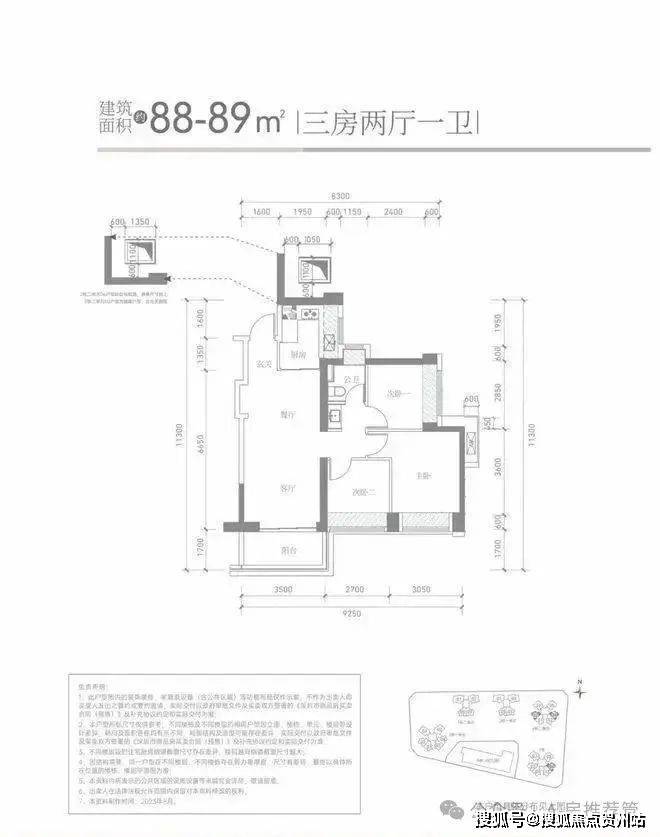 【产品户型】建筑面积约85-88m²三房两卫、建筑面积约110-114m²四房两卫、建筑面积约113-119㎡四房两卫