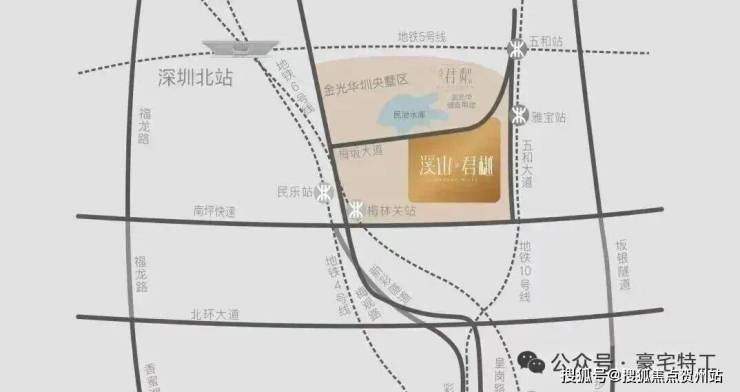 项目最近地铁为10号线雅宝站,步行约5分钟左右即可到达,可通过该站向南一站到达9/10号线孖岭站,向北三站到达5/10号线五和站。
