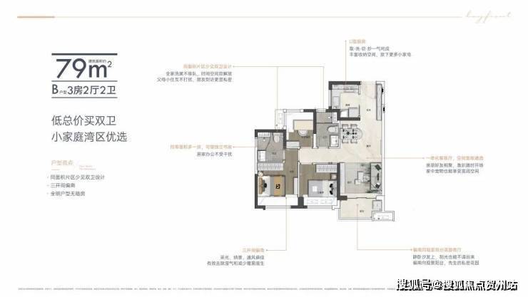 同等面积多出市面上其他产品一个卫生间。从单身到三代同堂,每个家庭阶段都能有舒适的体验