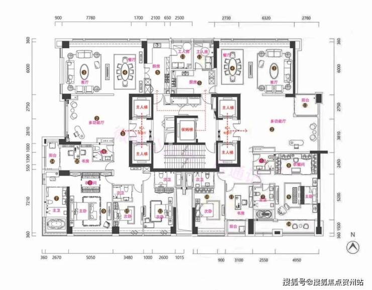 T7-01+02户型展示了约776㎡环幕大平层的高端住宅选择,旨在满足对极致生活品质追求的客户群体需求。