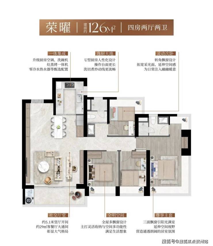 •颜值臻配:升级配置超大玄关柜、内嵌冰箱、灶蒸烤一体机、零冷水热水器、中央空调及厨房空调、轻松抽橱柜、双向流新风系统,以一体集成的精工美学,实现功能与颜值的并存。