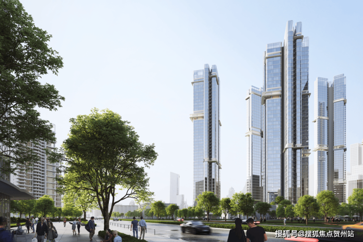 这不仅释放了更多住区内公共空间,也让住宅形式更城市化、公共化,在视觉上更好地融入区域环境。楼栋通过扭转布局避免了高密度布局容易产生的对视问题,设计也让每个户型都有270度观景面,将城市风光极致 “引入” 室内。