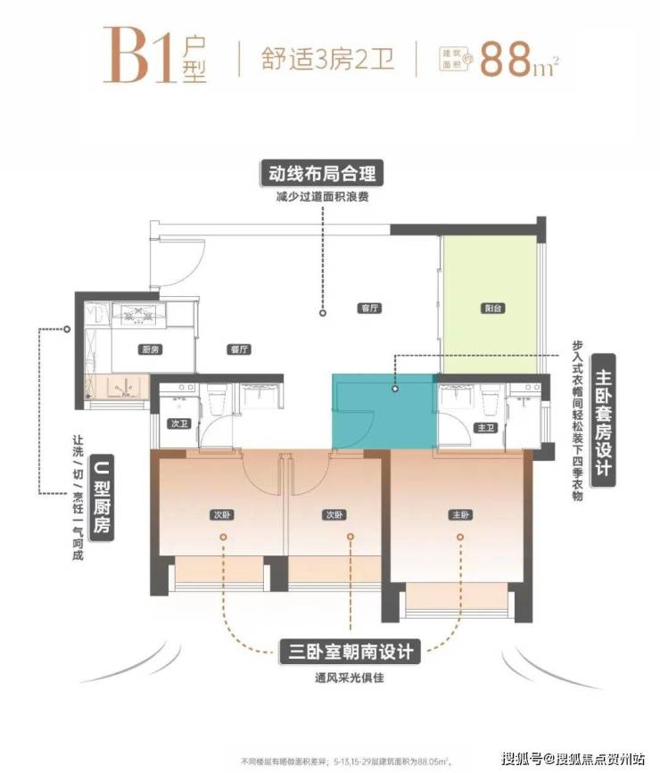 建面约88㎡舒适3房2卫