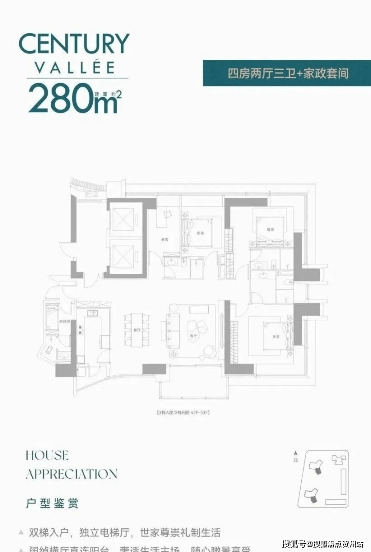 ▫️约233㎡|3+1房3卫双梯入户,横厅贯通阳台,三面采光,西北向望高尔夫景观