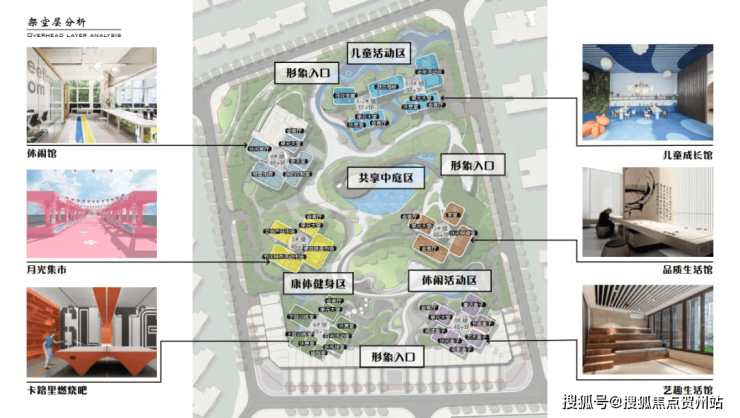 社区规划充分利用每栋楼的架空层空间,突破传统的架空层使用观念,以全新的“无界架空层”打造,景观上实现架空层与园林的融合,极尽地放大社区园林的观赏性,同时因应业主的全龄段需求,设置五大不同的主题及功能的社区活动场所,如儿童成长馆,品质生活馆,月光集市,艺趣生活馆,卡路里燃吧