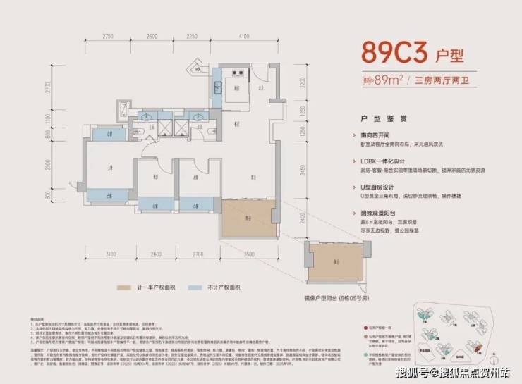 户型核心亮点:高赠送与高得房率
