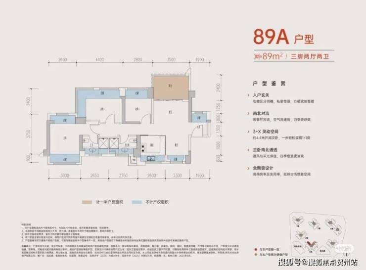 89㎡三房/3+1房两卫:有竖厅和横厅两种选择。部分户型可通过改造设备平台实现“3+1房”的灵活布局,得房率在96%-105%之间,赠送率最高可达27%。