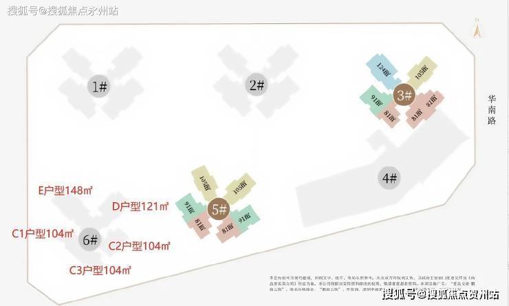 本次将推的是6栋住宅,总高32层,2梯5户设计,总共155套,面积有104-121-148㎡的4房2卫户型。