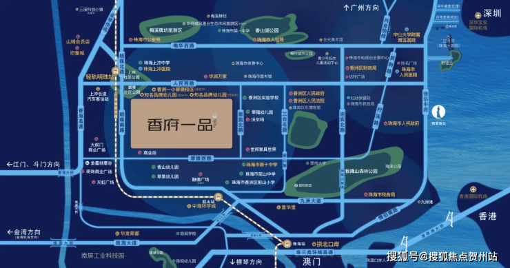 对外交通,项目5分钟即抵轻轨明珠站,快速接轨大湾区内的多个重要城市;15分钟接连港珠澳大桥、拱北、青茂、湾仔、横琴口岸,速通港澳。