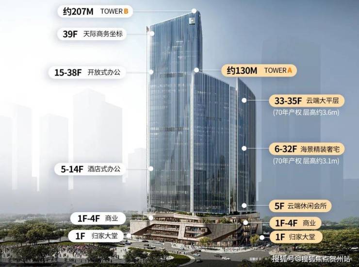 项目以地标综合体理念打造,是集办公、住宅、商业于一体的高端综合体,呈现出“全新一代居住形态”。