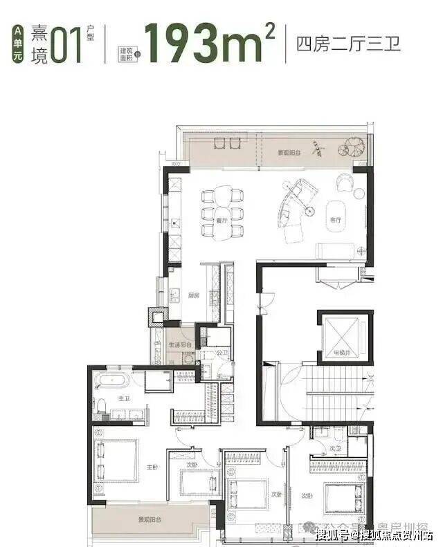 268平五房四卫,两梯两户,专梯入户,约10.55米横厅,总价2680万起