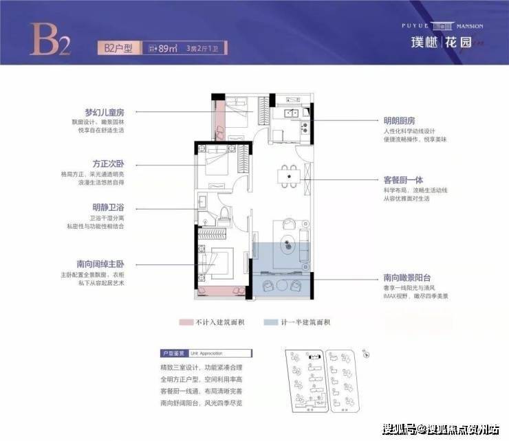 2. 餐客厅一体化,宽景人居尺度;观景双阳台,南北通透清风伴。