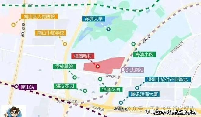 桂庙新村城市更新单元位于南山区粤海街道白石路与学府路交叉口西北侧,东临白石路,西近南海大道,南临学府路,北面与深圳大学毗邻。周边集聚了腾讯滨海大厦、软件产业基地等写字楼,地理位置优越。