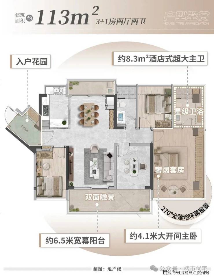 ——建面约113㎡3+1房两厅两卫,实用率超100%