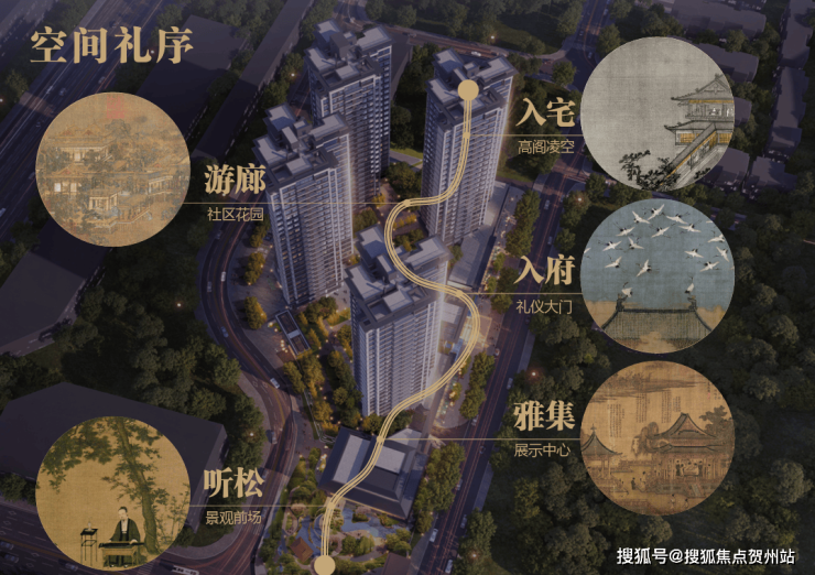 比如在空间打造上,遵以传统礼序展开,「听松」、「雅集」、「入府」、「游廊」、「入宅」空间礼序,呼应精神内核。