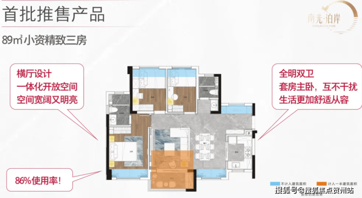 建面约89平米平层得房率86%